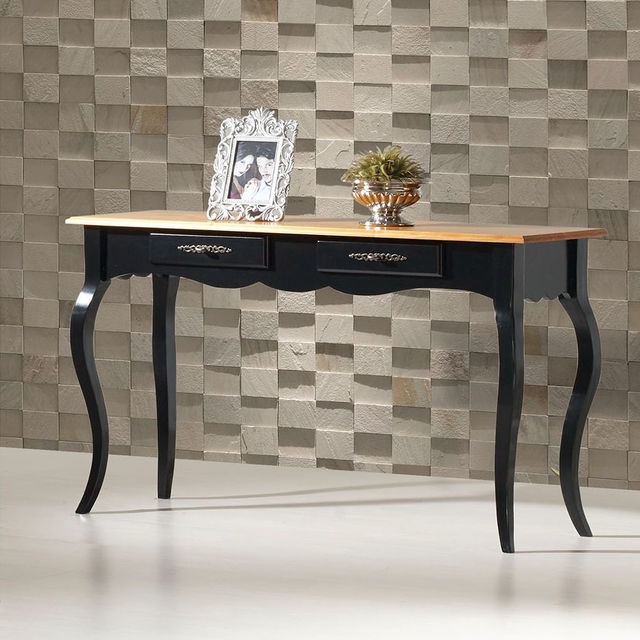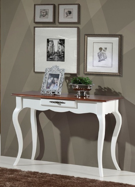 Produto em madeira macic?a nas cores em verniz. Nas cores em laca, tampo e gaveta em MDF. Gaveta com corredic?as meta?lica