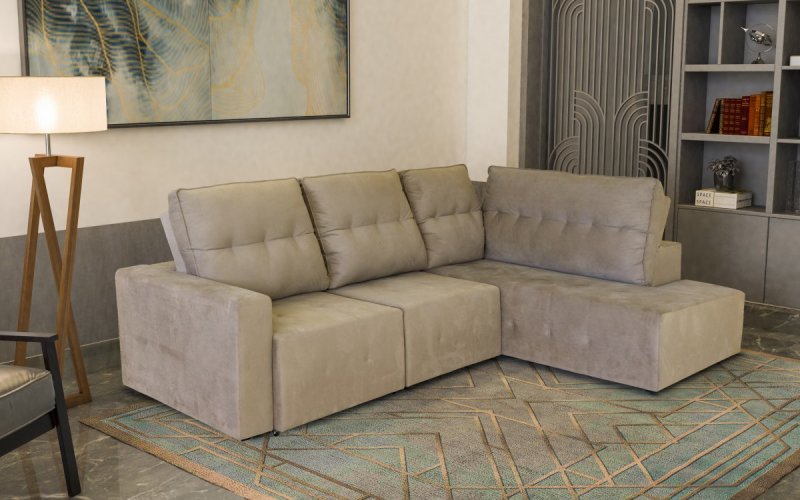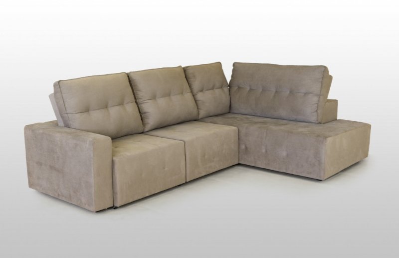 Encosto: Preenchido totalmente com fibra siliconada, sustentado por percintas elásticas.