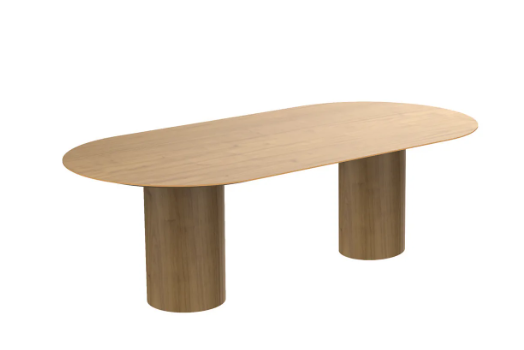 Tampo em MDF com chanfro que apresenta efeito de “borda infinita”. Bases em compensado flexível. Produto fornecido desmontado, sendo necessário apenas parafusar bases ao tampo.