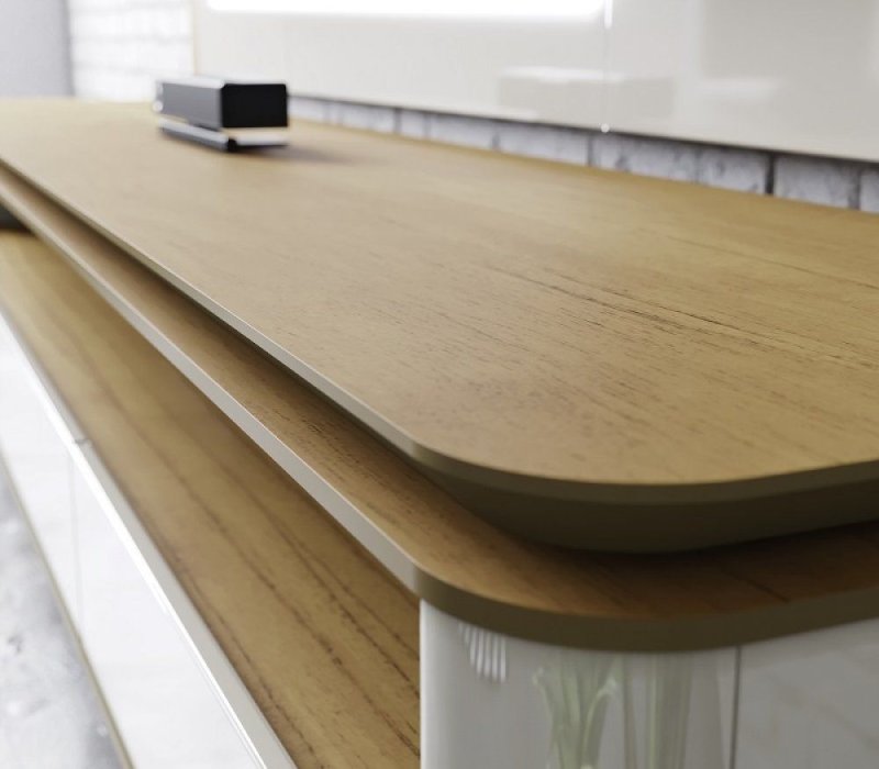 * Cantos do rack com curvas em MDF laqueado
