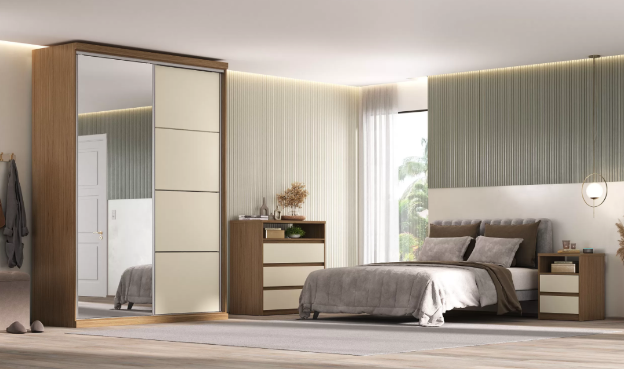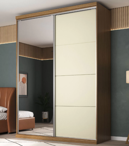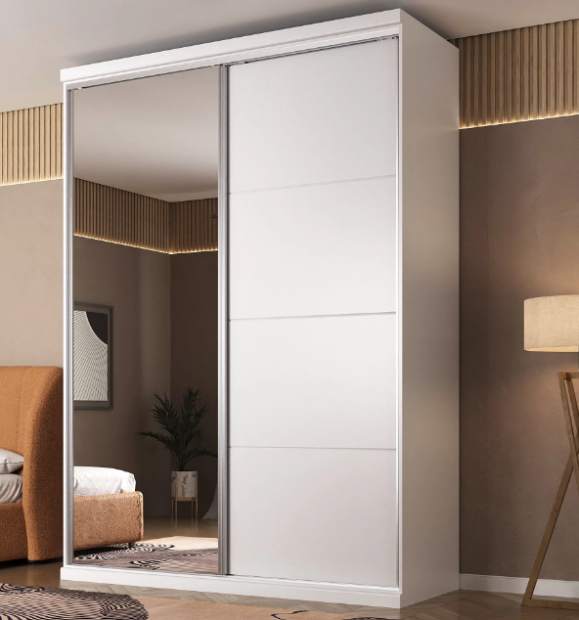 Roupeiro 100% MDF com espelho e 2 portas deslizantes.
